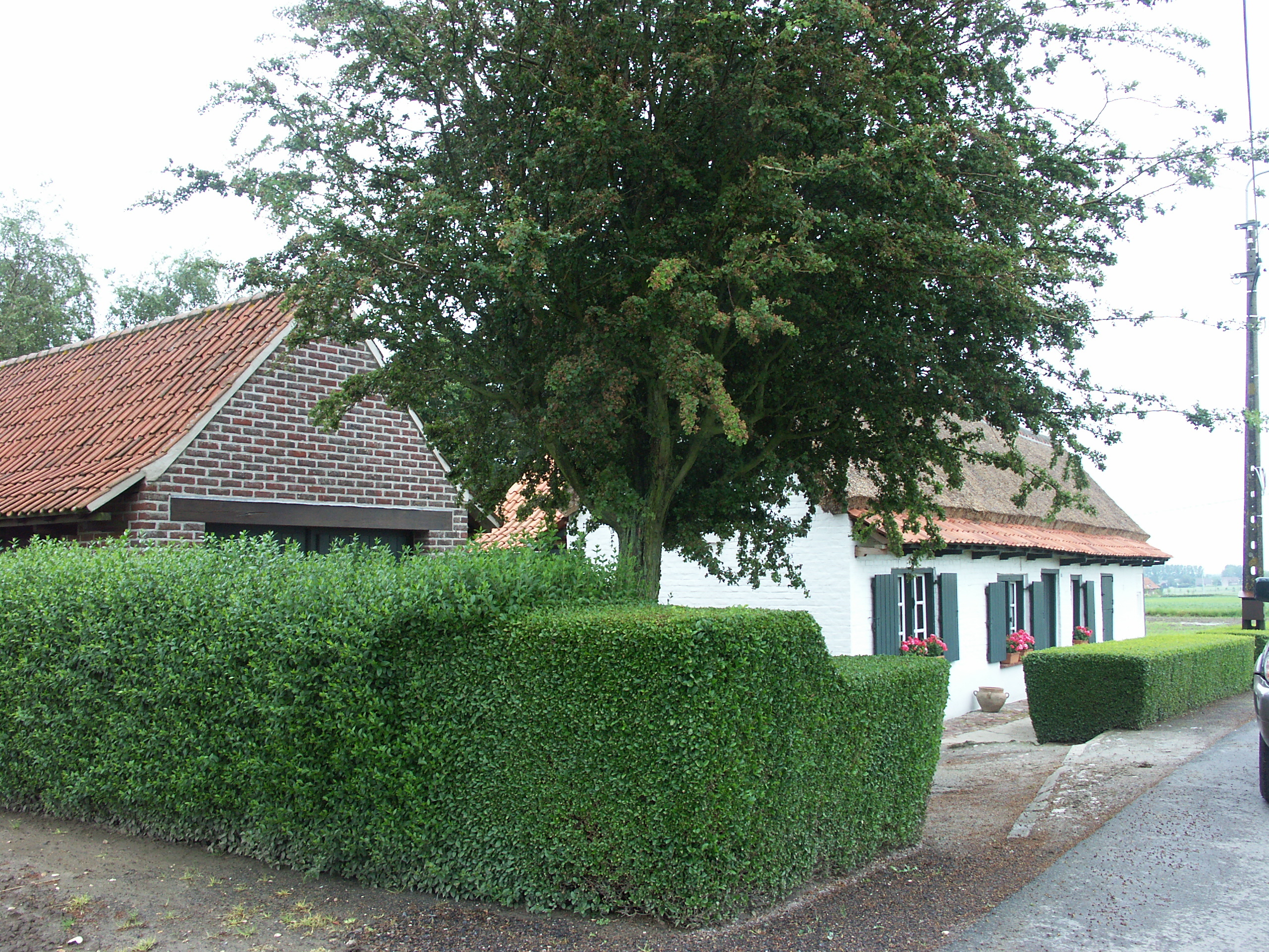 Poperingestraat 41. Erfbeplantingen. Geschoren hagen.