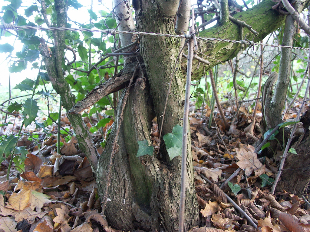 Hellegatstraat. De Pleute. Gelegde haag. Weerhaag met vlechtwerk.