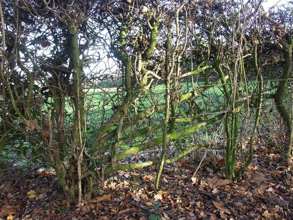 Hellegatstraat. De Pleute. Gelegde haag. Weerhaag met vlechtwerk.