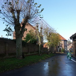 Hellegatstraat. Gekandelaarde bomenrij. Linden.