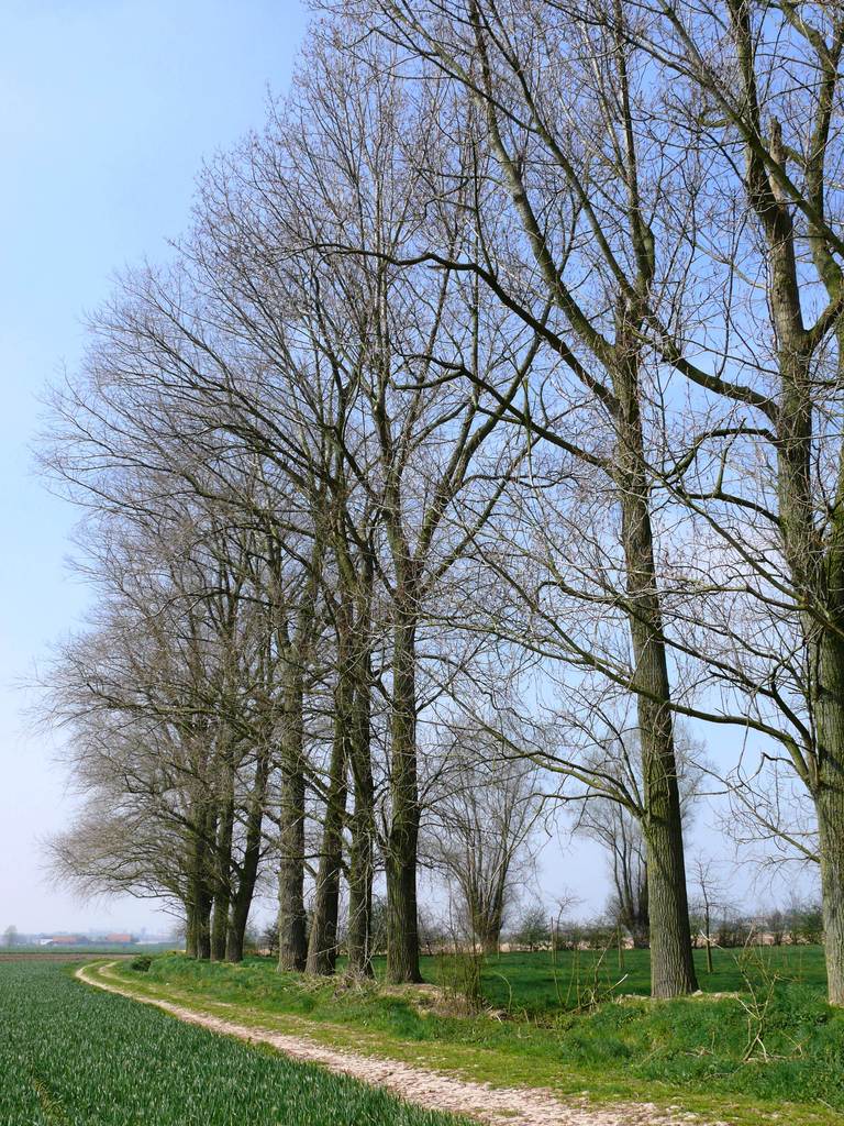 Zwijnebakstraat. Opgaande populierenrij.