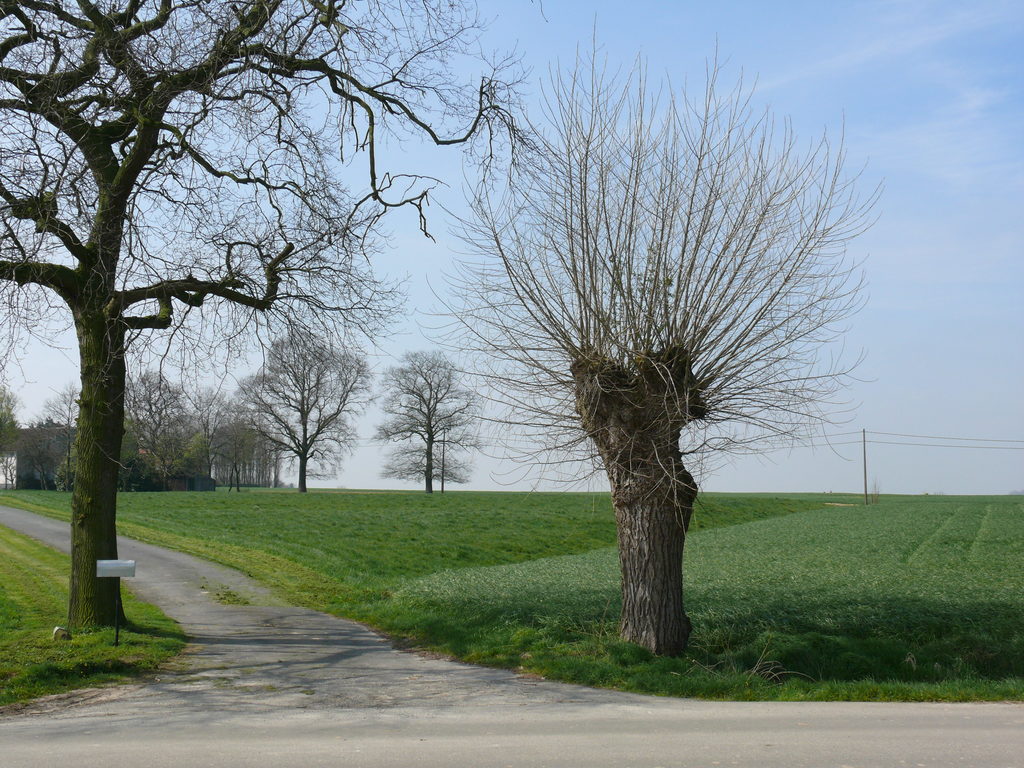 Heuvelland (Nieuwkerke) Rozestraat 5 Knotpopulier en opgaande eik als welkomstbomen (2)