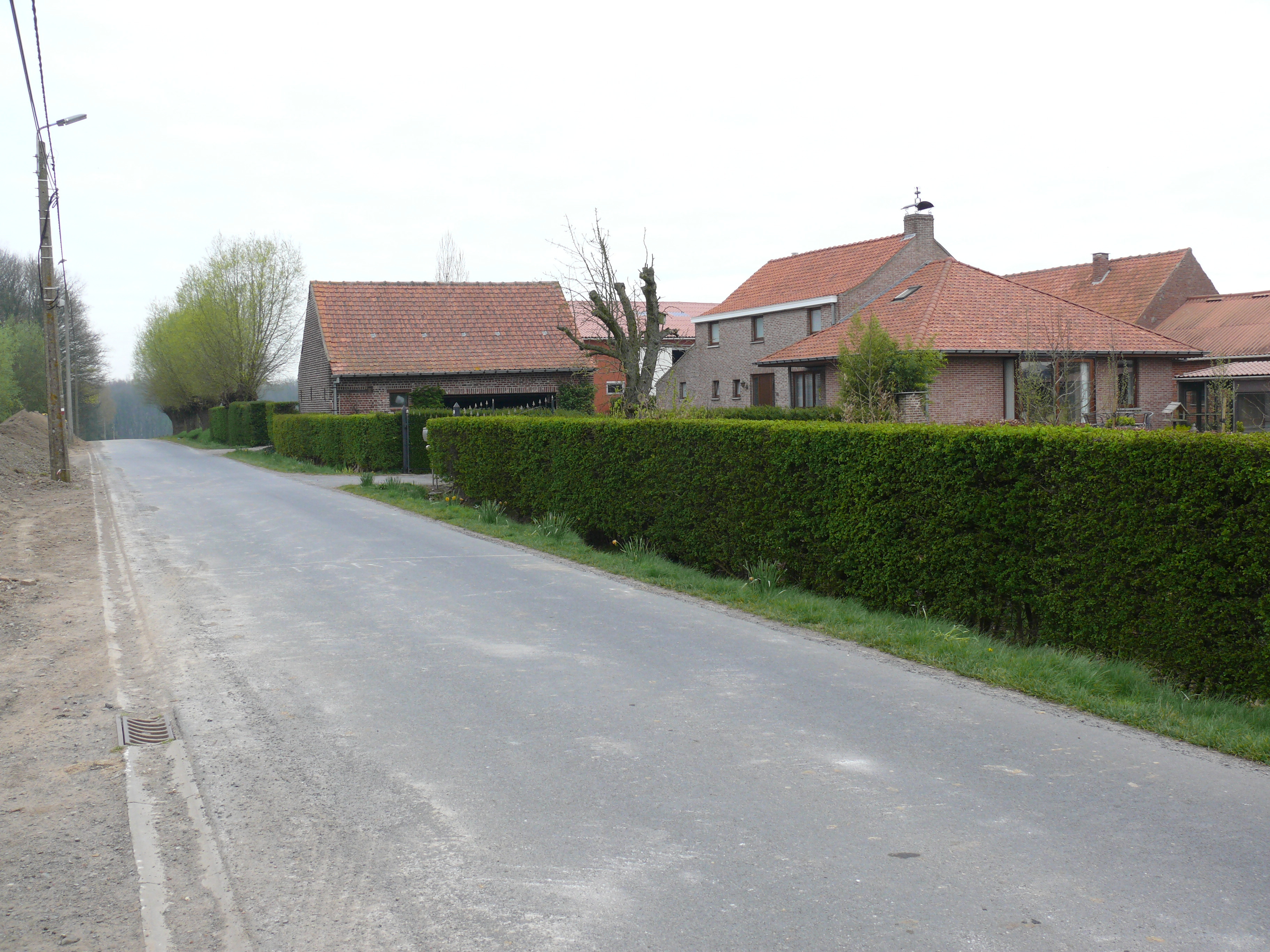 Vierstraat. Geschoren meidoornhaag.