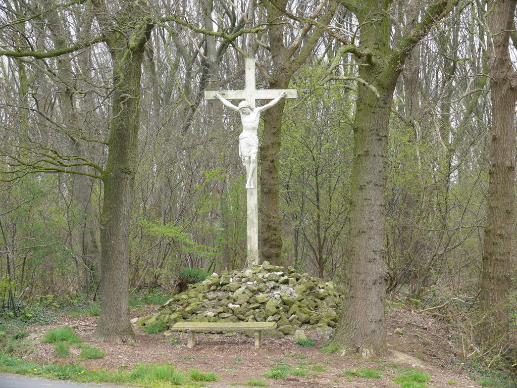 Vierstraat. Veldkruis met opgaande bomen.
