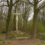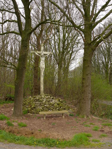 Vierstraat. Veldkruis met opgaande bomen.