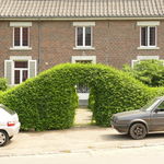 Helshovenstraat. Geschoren haag. Gele Kornoelje.