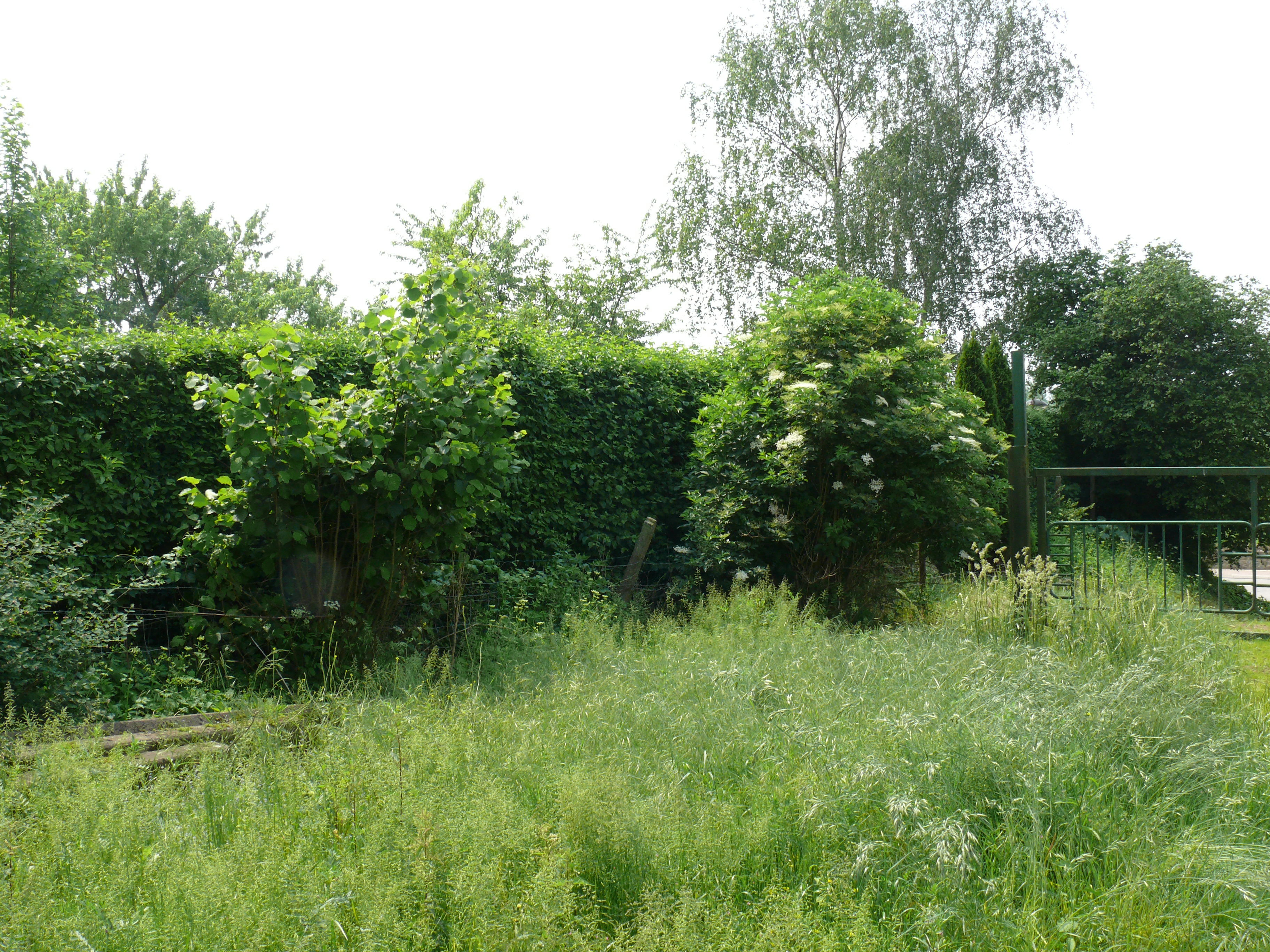 Nieuwe Steenweg 210. Prieel en haag. Gele Kornoelje.