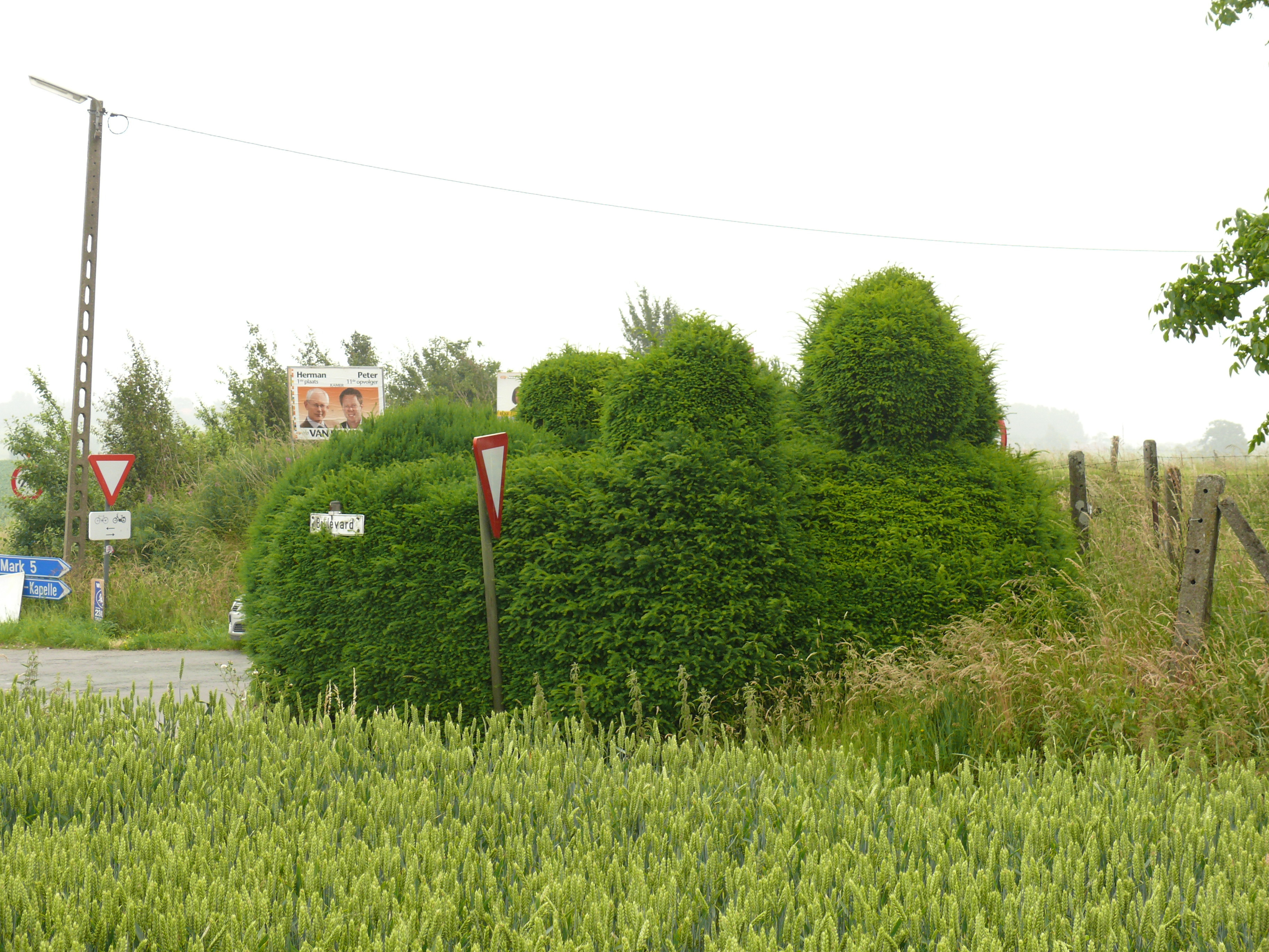 Geraardsbergsestwg. Veldkruis met geschoren Taxus.