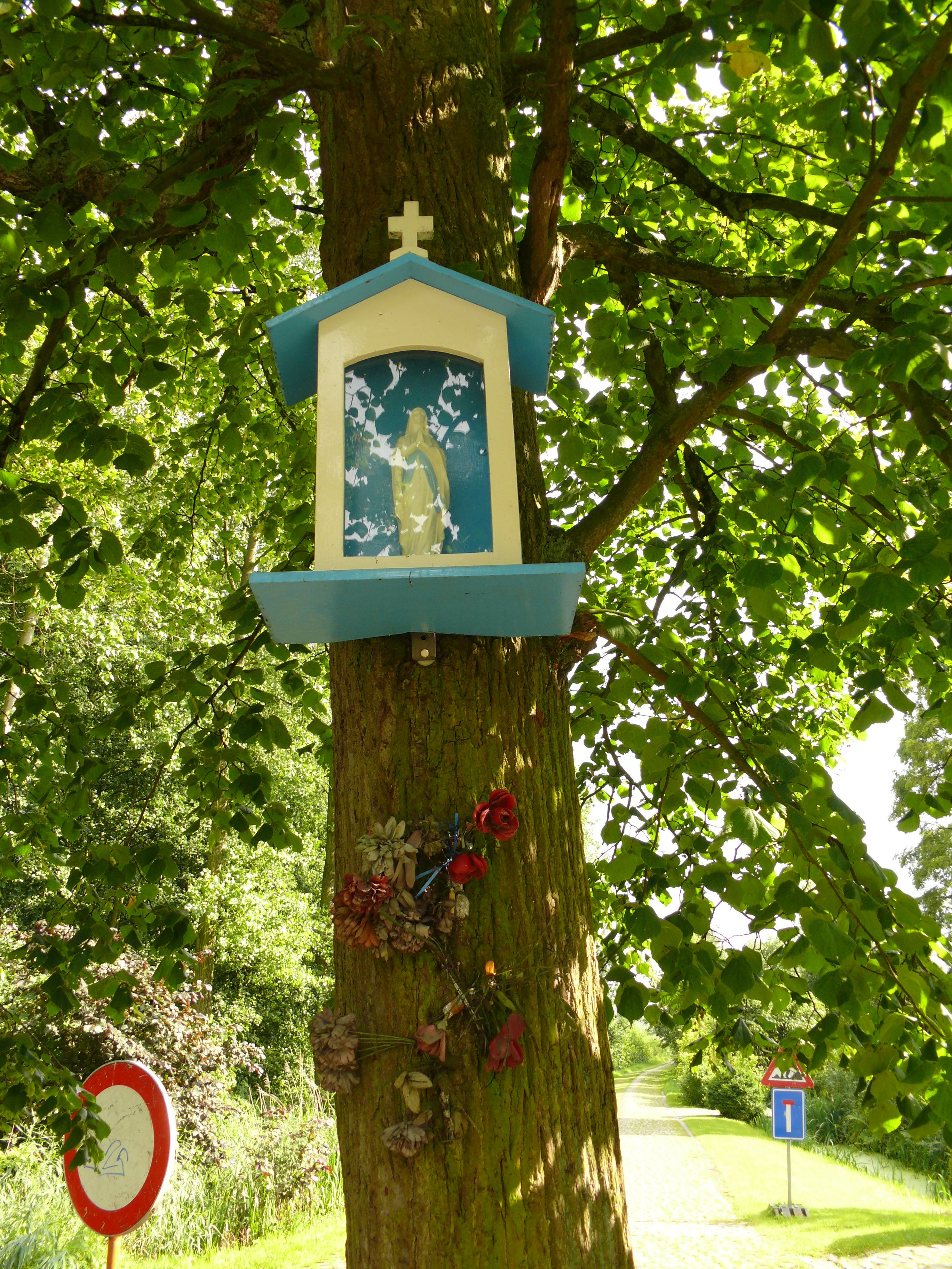De afbeelding 'Opgaande lindeboom met boomkapel' gemaakt door Van der Linden, Geert wordt ter beschikking gesteld door Agentschap Onroerend Erfgoed (AOE) onder de volgende voorwaarden: Modellicentie voor gratis hergebruik, Naamsvermelding 4.0 Internationaal.