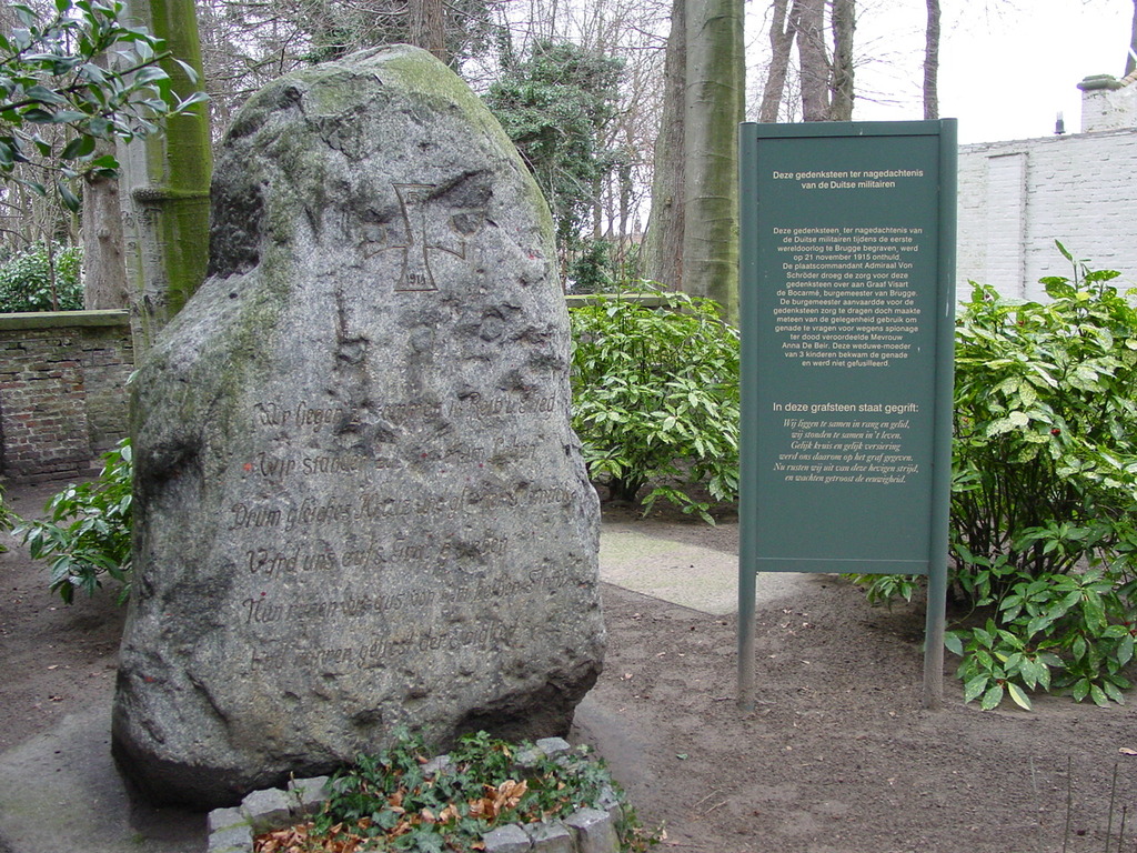 De afbeelding 'De Centrale Begraafplaats: Duitse gedenksteen' gemaakt door Decoodt, Hannelore wordt ter beschikking gesteld door Agentschap Onroerend Erfgoed (AOE) onder de volgende voorwaarden: Modellicentie voor gratis hergebruik, Naamsvermelding 4.0 Internationaal.