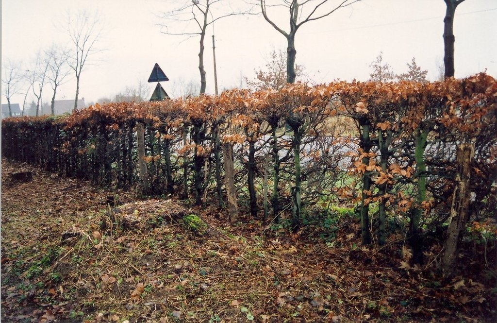 Sterrebos. Geschoren haag als afsluiting van het park.