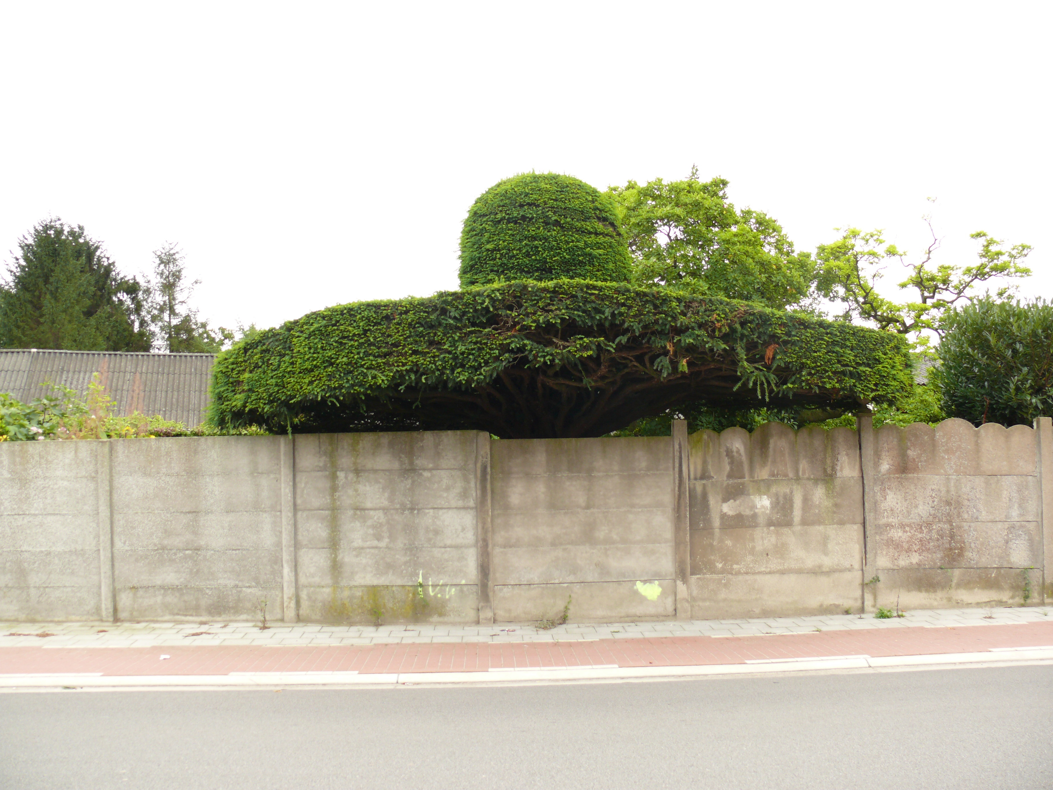 Kortenhoekstraat. Parasoltaxus.