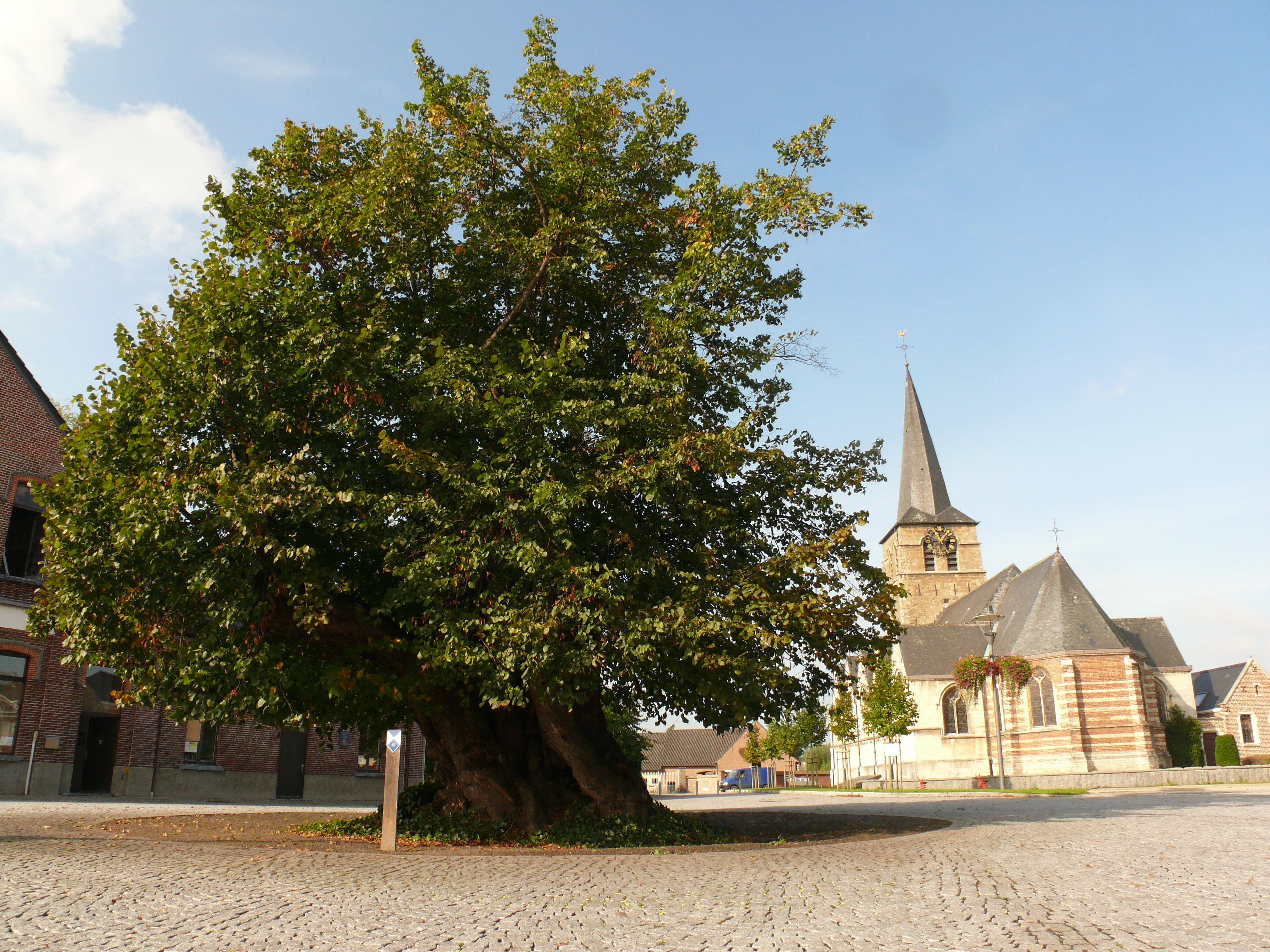 De afbeelding 'Wetteren Dorpsplein zonder nummer Dorpslinde' gemaakt door Van der Linden, Geert wordt ter beschikking gesteld door Agentschap Onroerend Erfgoed (AOE) onder de volgende voorwaarden: Modellicentie voor gratis hergebruik, Naamsvermelding 4.0 Internationaal.