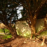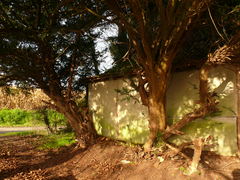 Van Repinghens huizeken. Erfbeplanting. Taxushaag.
