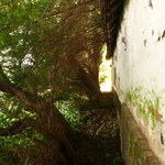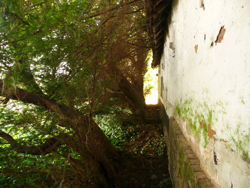 Van Repinghens huizeken. Erfbeplanting. Taxushaag.