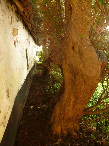 Van Repinghens huizeken. Erfbeplanting. Taxushaag.