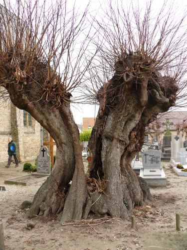 Veurne_Avekapelle_Geknotte zomerlinde op kerkhof Sint-Michielskerk