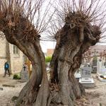 Veurne_Avekapelle_Geknotte zomerlinde op kerkhof Sint-Michielskerk