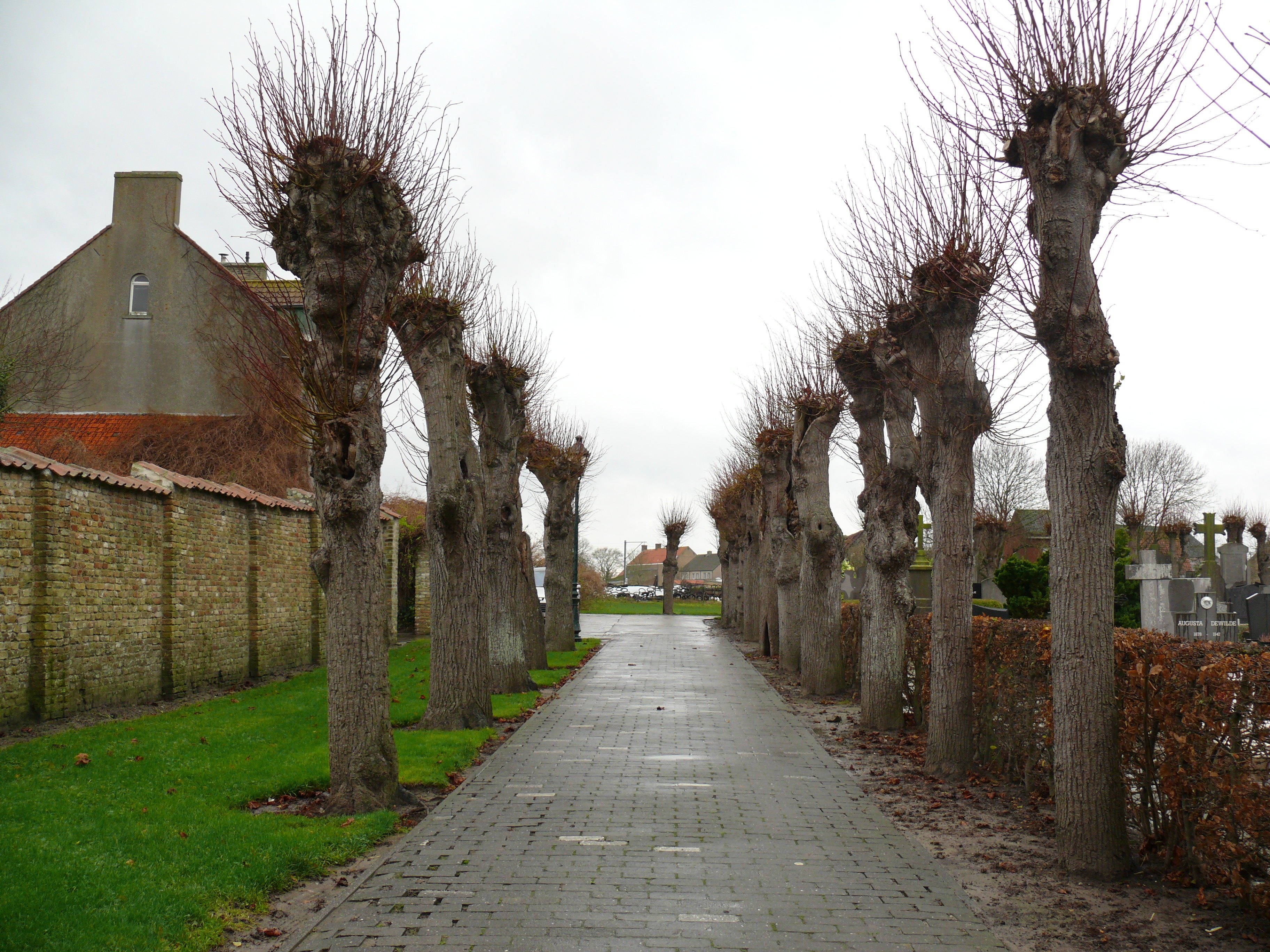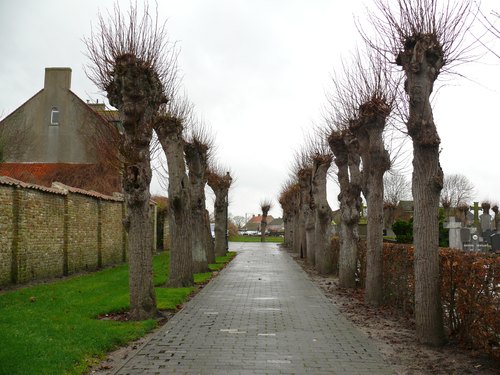 Kerkhof Avekapelle. Lijnaanplanting gekandelaarde linden.