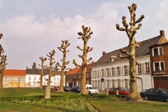 Enameplein. Ename. Gekandelaarde Platanenrij.