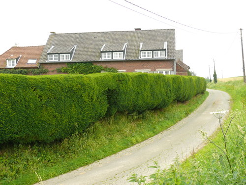De afbeelding 'Herne_Herfelingen_Beeldekensstraat_13A_Geschoren_erfafsluitingshaag_van_taxus_3' gemaakt door Van der Linden, Geert wordt ter beschikking gesteld door Agentschap Onroerend Erfgoed (AOE) onder de volgende voorwaarden: Modellicentie voor gratis hergebruik, Naamsvermelding 4.0 Internationaal.