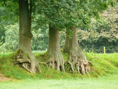 Rendries. Opgaande bomenrij op talud.