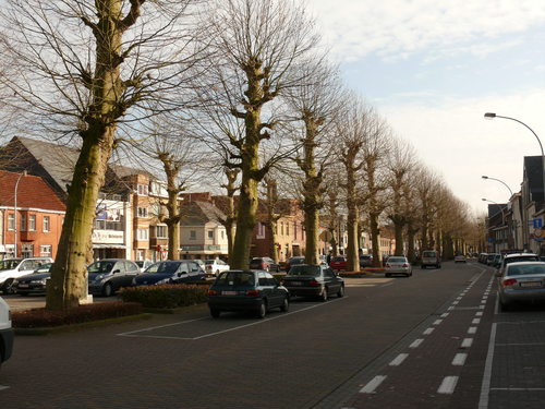 Groenlaan. Plein met gekandelaarde Platanen.