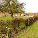 Leenstraat 36. Geschoren haag bij boomgaard.