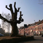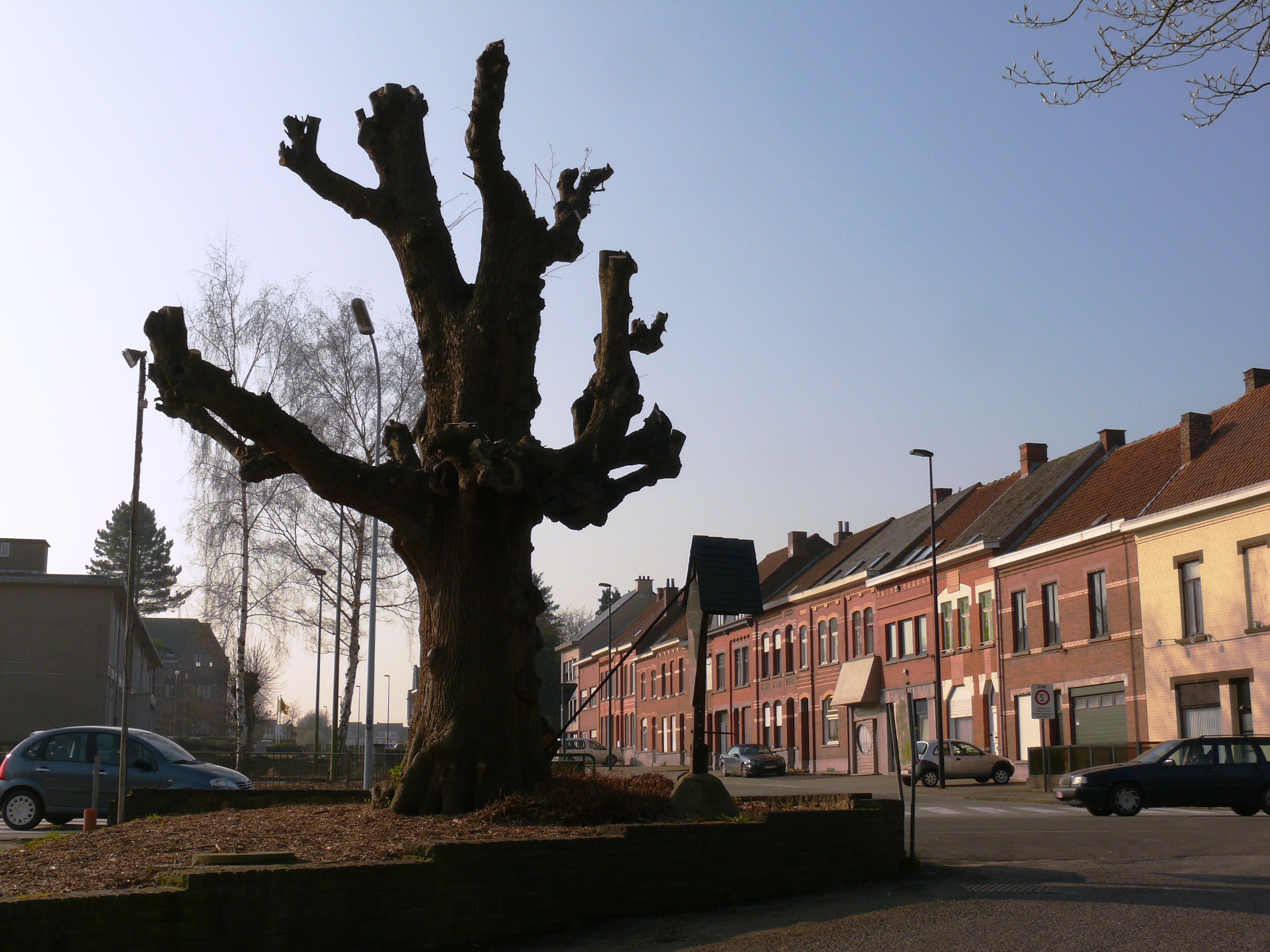 Ninovestraat. Gekandelaarde Linde met veldkruis.