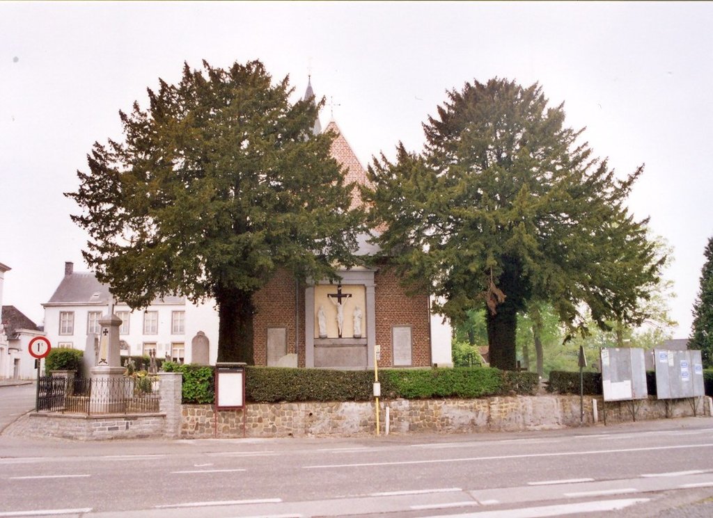 Twee op stam gezette taxussen kerkhof Leeuwergem