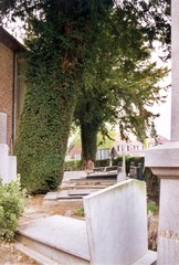 De afbeelding 'Twee op stam gezette taxussen kerkhof Leeuwergem' gemaakt door Van der Linden, Geert wordt ter beschikking gesteld door Agentschap Onroerend Erfgoed (AOE) onder de volgende voorwaarden: Modellicentie voor gratis hergebruik, Naamsvermelding 4.0 Internationaal.
