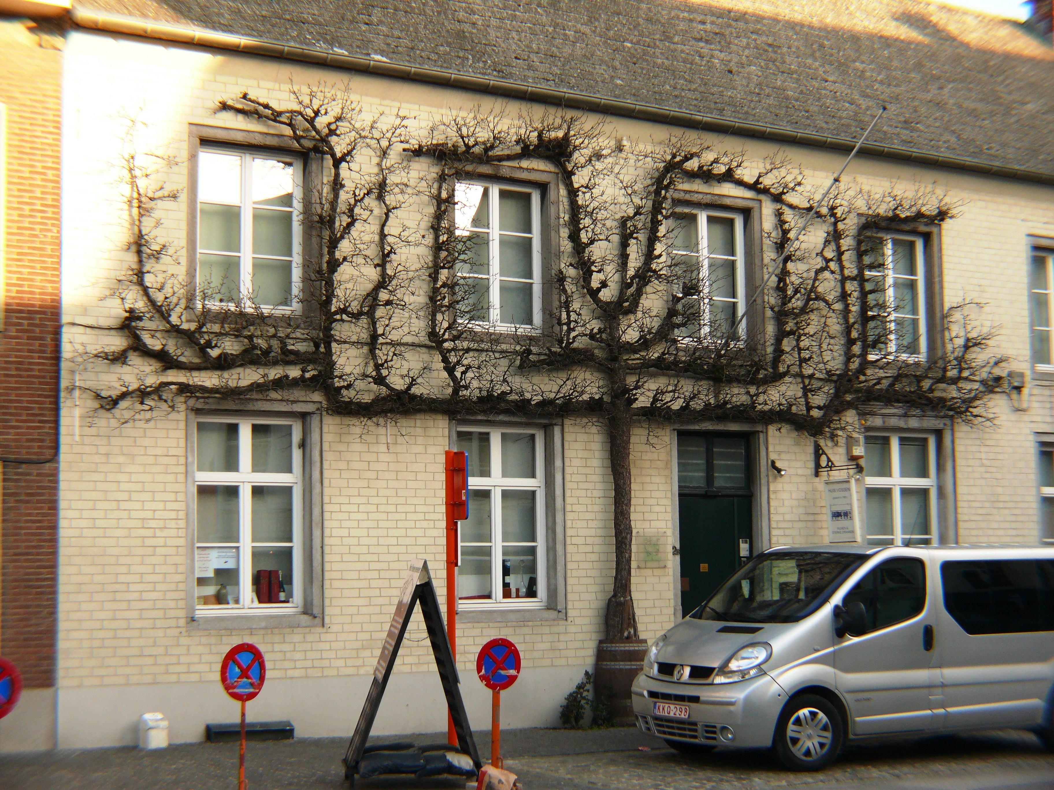 De afbeelding 'Twee leiperen bij Huis Vossen' gemaakt door Van der Linden, Geert wordt ter beschikking gesteld door Agentschap Onroerend Erfgoed (AOE) onder de volgende voorwaarden: Modellicentie voor gratis hergebruik, Naamsvermelding 4.0 Internationaal.