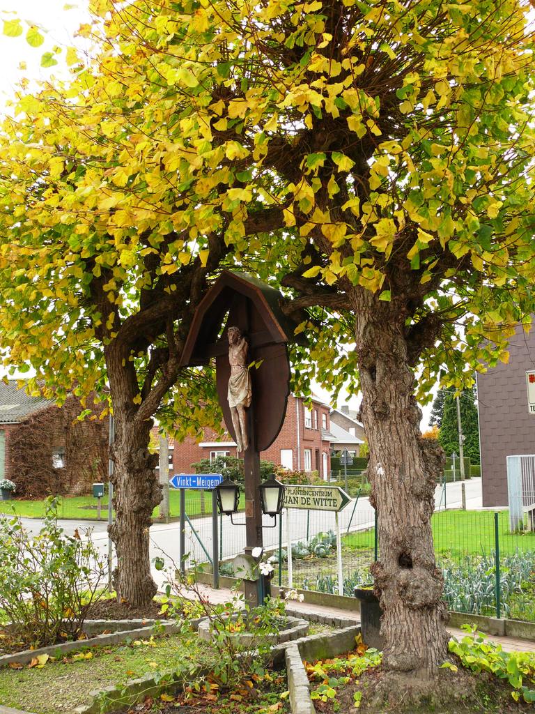 Kerrebroek. Wegkruis met geleidelinden.