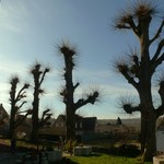 Kerkhof. Gekandelaarde linden.