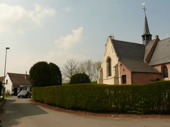 Vlassenbroek. Kerkhof. Geschoren haag en geschoren taxusbomen.