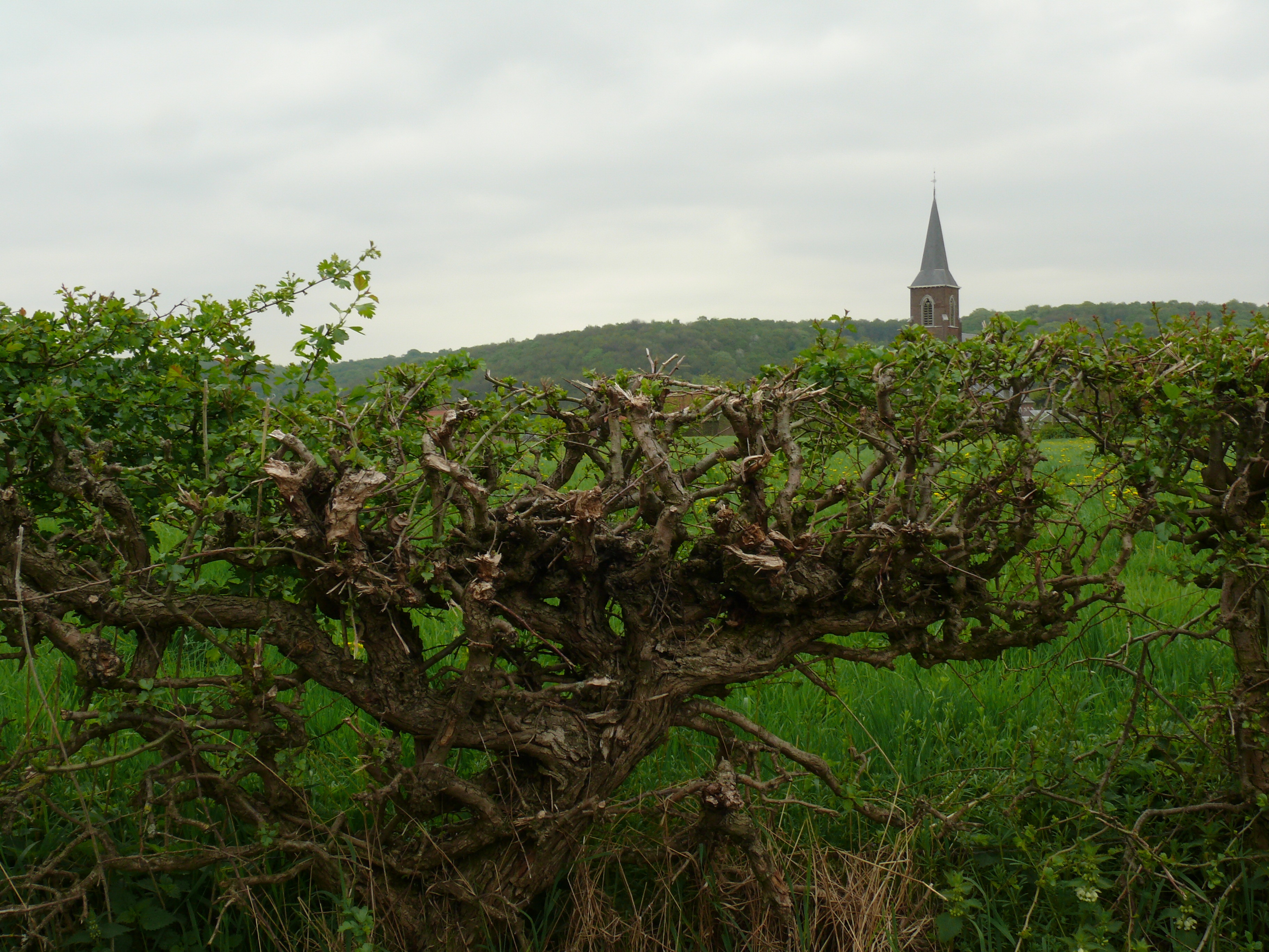 Dorpstraat. Oude vlechthaag.