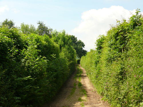 Berg. Houtkant op talud langs holle weg.