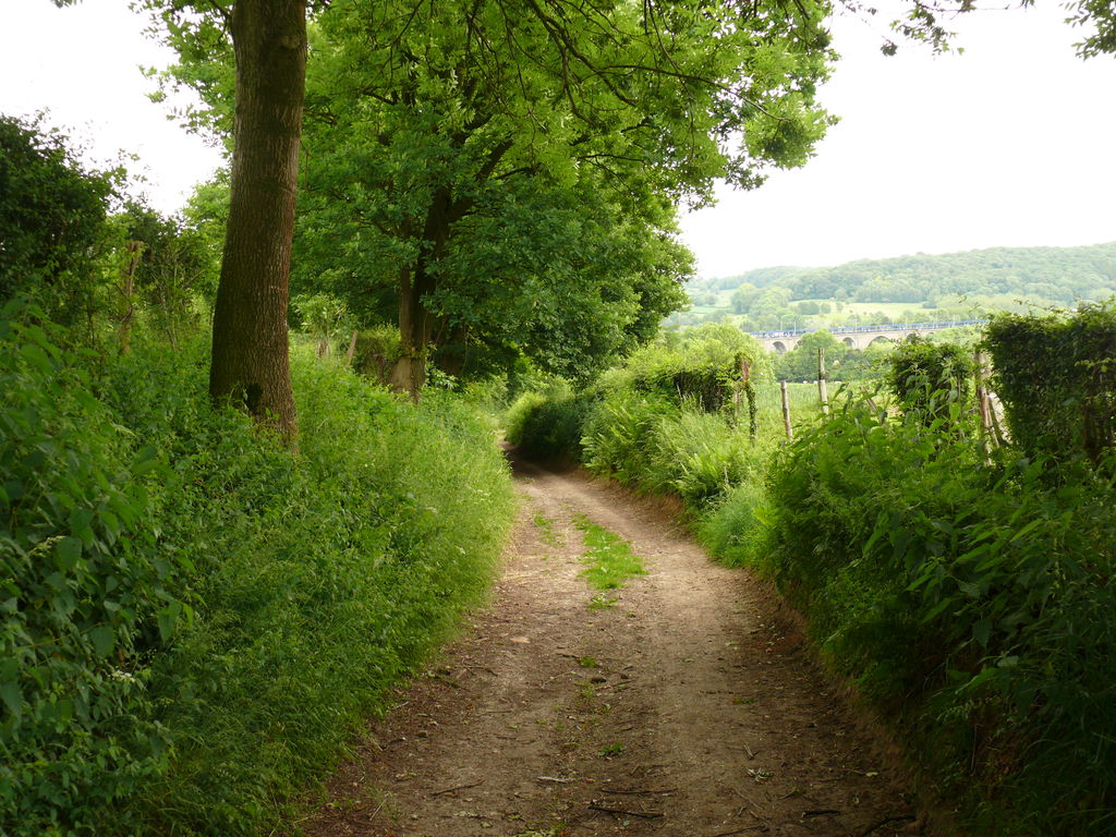 Mariahof. Holle weg met houtkanten op talud.