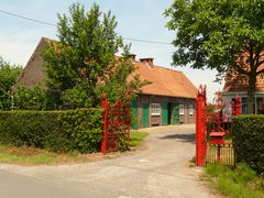 De afbeelding 'Hoeve met losse bestanddelen en meidoornhaag met twee geschoren hulstboompjes als hoekboom' gemaakt door Van der Linden, Geert wordt ter beschikking gesteld door Agentschap Onroerend Erfgoed (AOE) onder de volgende voorwaarden: Modellicentie voor gratis hergebruik, Naamsvermelding 4.0 Internationaal.