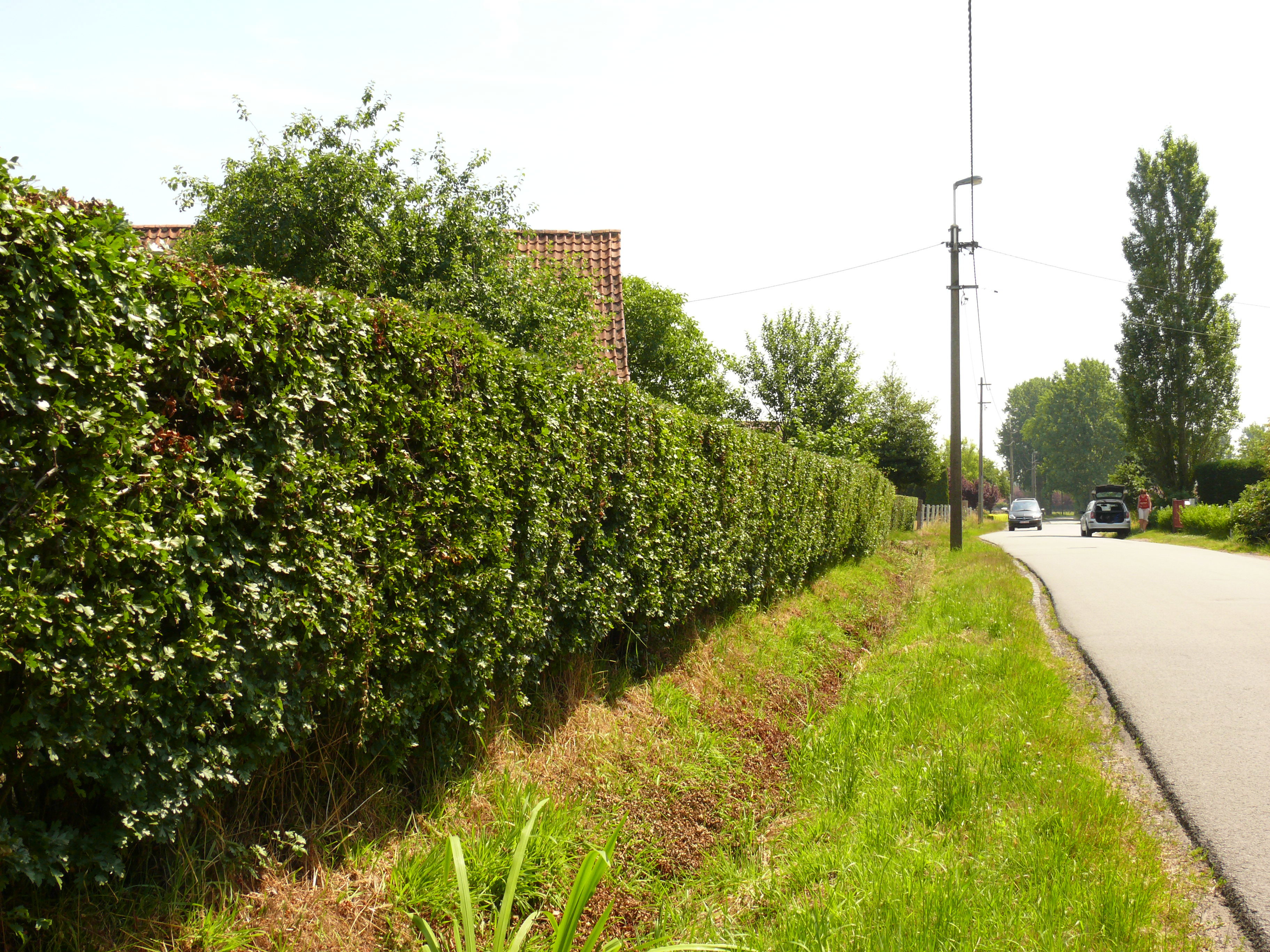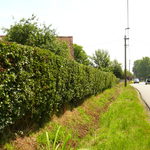 De afbeelding 'Meidoornhaag met twee geschoren hulstboompjes als hoekboom' gemaakt door Van der Linden, Geert wordt ter beschikking gesteld door Agentschap Onroerend Erfgoed (AOE) onder de volgende voorwaarden: Modellicentie voor gratis hergebruik, Naamsvermelding 4.0 Internationaal.