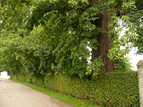 Hof te Kattebeke. Opgaande kastanjebomenrij.