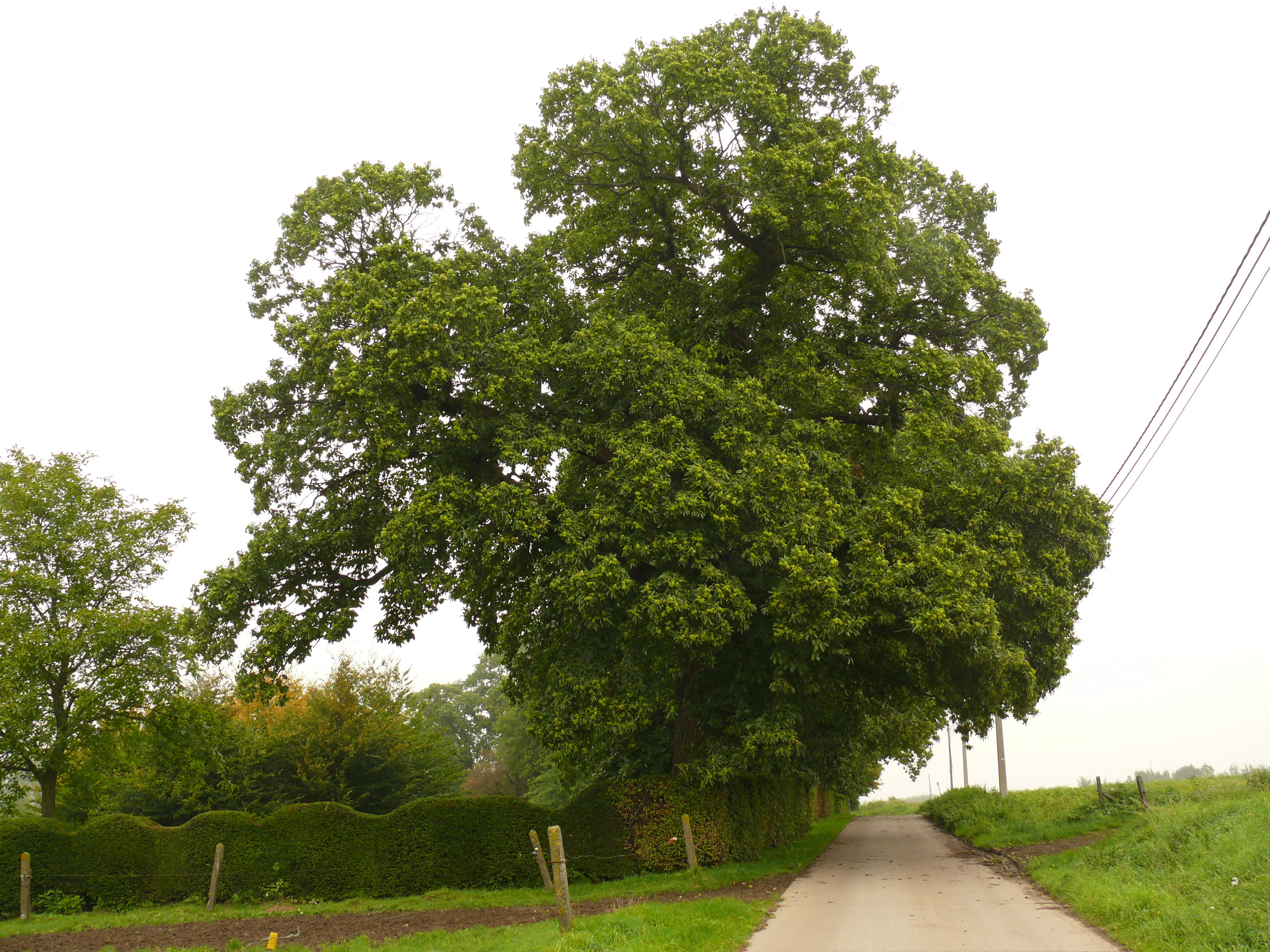 Hof te Kattebeke. Opgaande kastanjebomenrij.