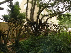 Pastorietuin. Taxushaag met vlechtwerk.