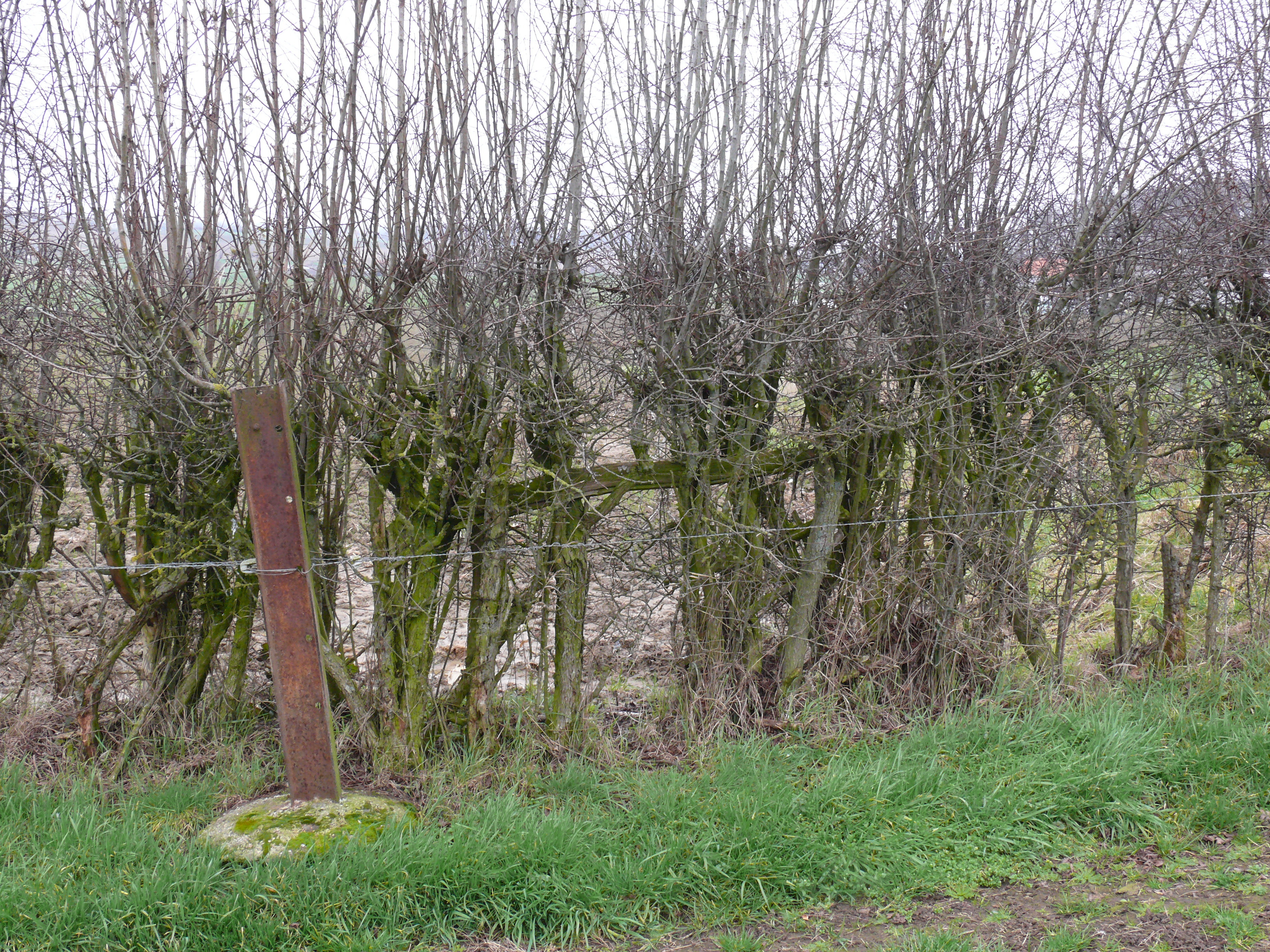 Kroonaardstraat. Deels gelegde meidoornhaag.