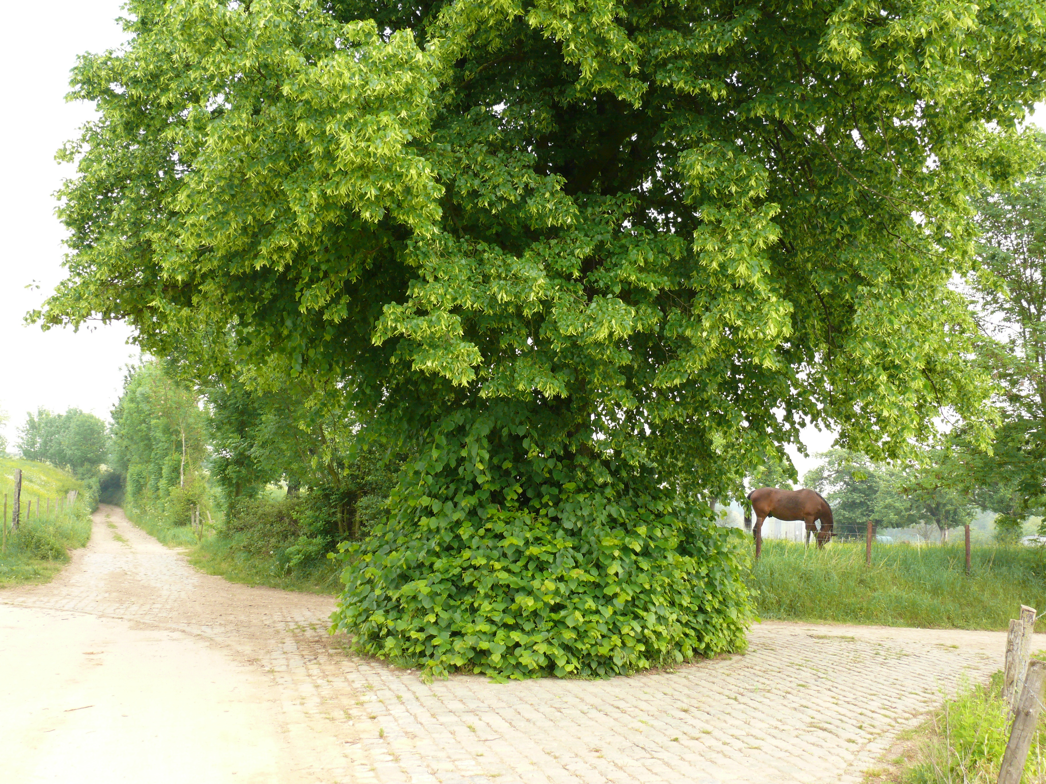's Gravenvoeren Moleke opgaande Hollandse linde bij wegkruis