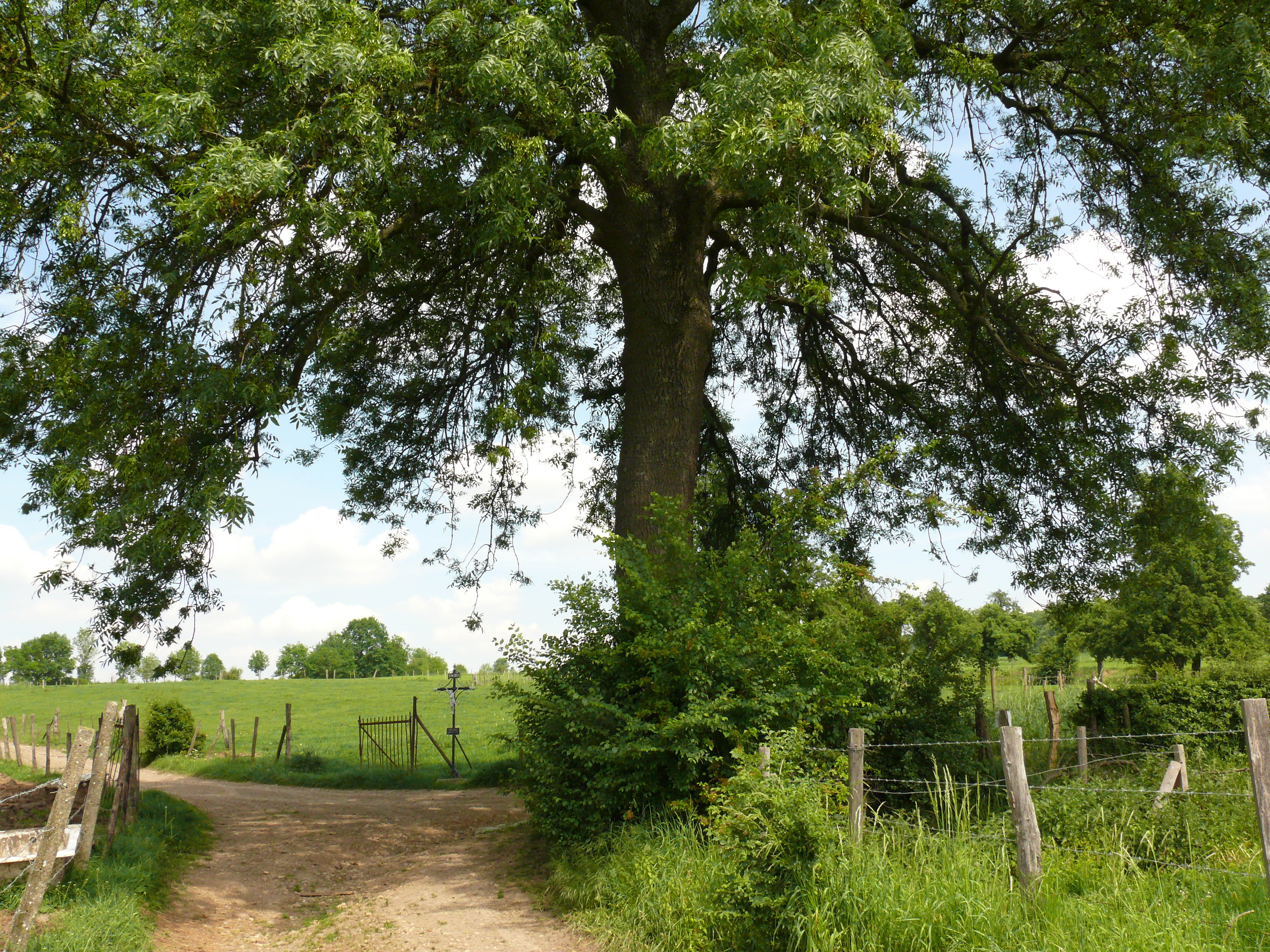 De afbeelding 'Voeren, Kerkhofstraat, opgaande es met wegkruis' gemaakt door Van der Linden, Geert wordt ter beschikking gesteld door Agentschap Onroerend Erfgoed (AOE) onder de volgende voorwaarden: Modellicentie voor gratis hergebruik, Naamsvermelding 4.0 Internationaal.