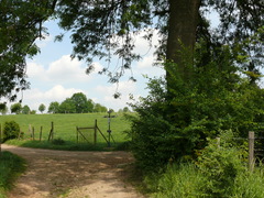 Voeren, Kerkhofstraat, opgaande es met wegkruis