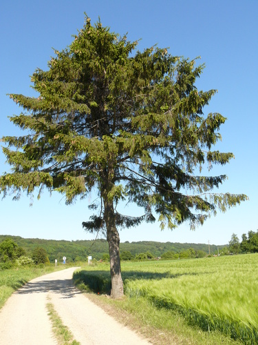 Opgaande Fijnspar. Hoekboom.