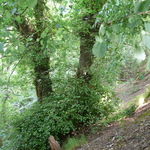 Houtkant op talud langs Berwijn.Tweestammige knotboom van Winterlinde.