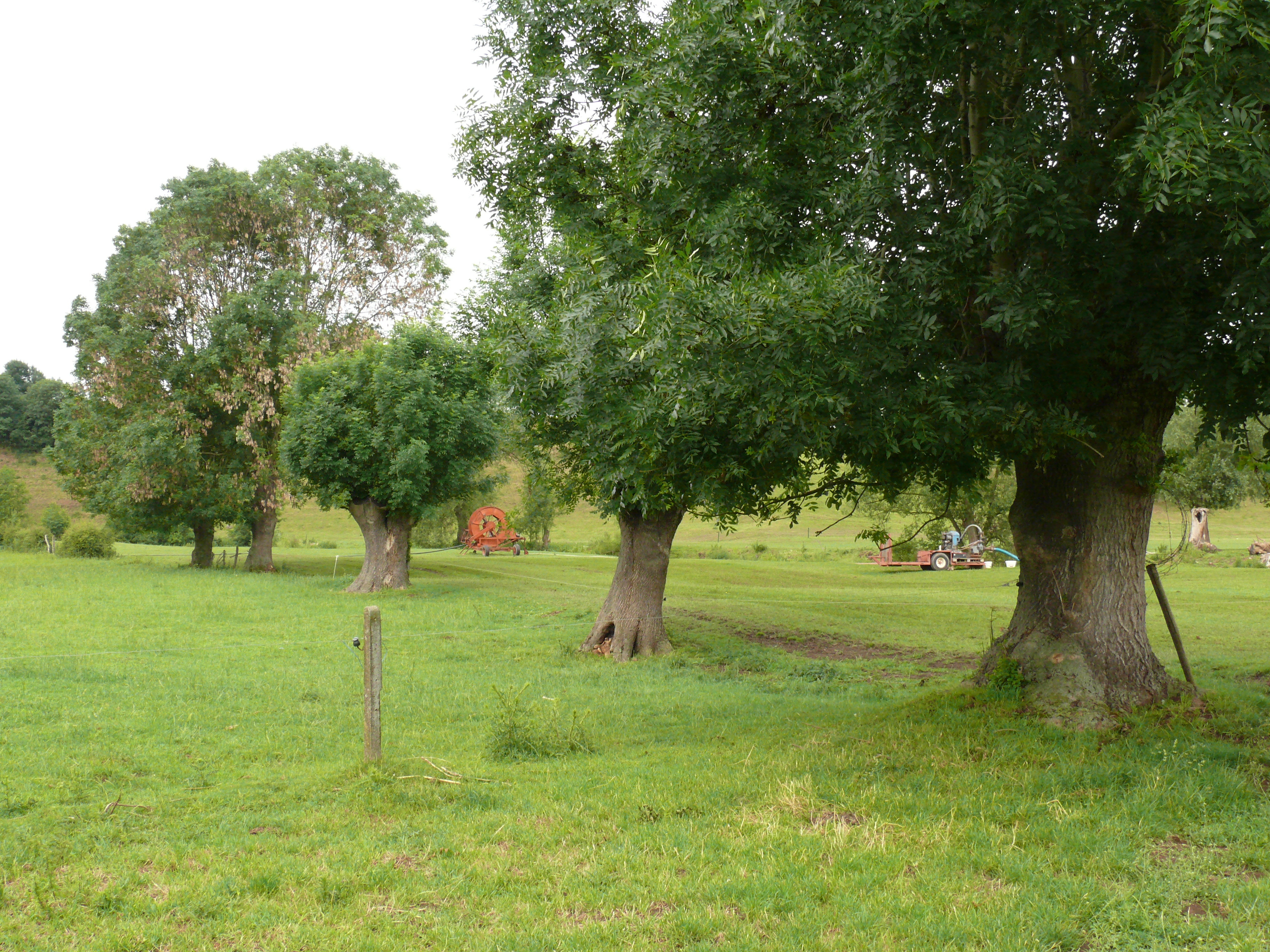 Voeren Moelingen knotessenrij langs grasland in Berwijnvallei